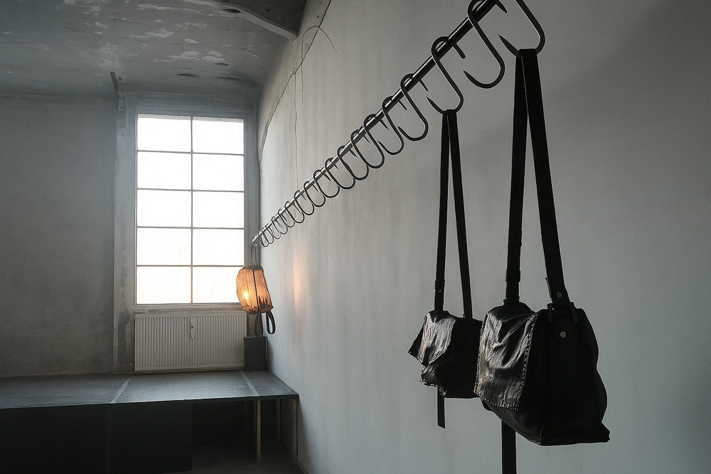 WERKSCHWARZ creates handcrafted leather bags and accessories in deep black tones — minimalist, durable, unisex pieces crafted from vegetable-tanned leather with sculptural geometry and timeless utility.