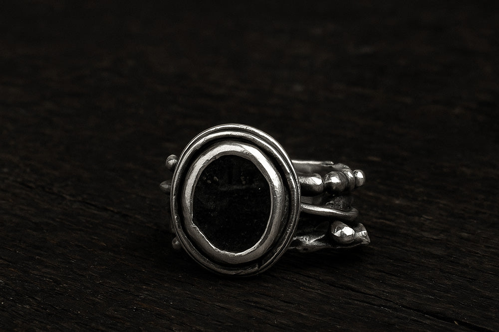 Enri Mars creates handcrafted Italian silver jewellery with raw textures, sculptural forms and oxidised finishes, made in small batches with artisanal precision.