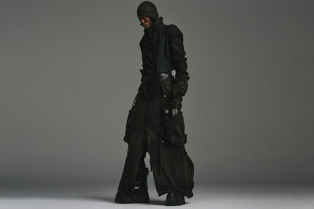 Julius_7 fuses Tokyo underground aesthetics, industrial minimalism and avant-garde silhouette — a cult streetwear brand known for deconstructed tailoring, dark palettes and gothic dystopian style.