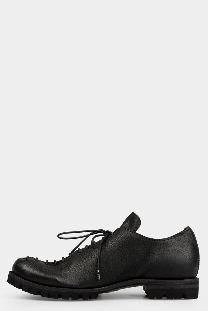 Men's derbies in black calf leather with ladder lacing starting from the toe-box with a stacked leather sole finished with a Vibram rubber sole from the AW25 collection from Samoke.