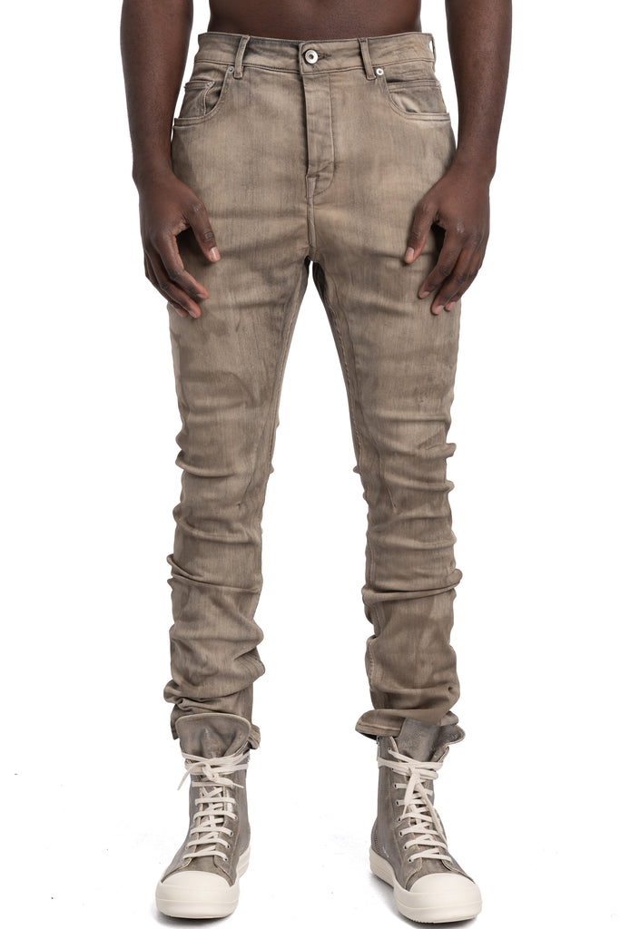 Men's slim to regular fit 6 pocket jeans in dust washed denim stretch with low rise from the SS26 collection "Temple" from Rick Owens DRKSHDW.