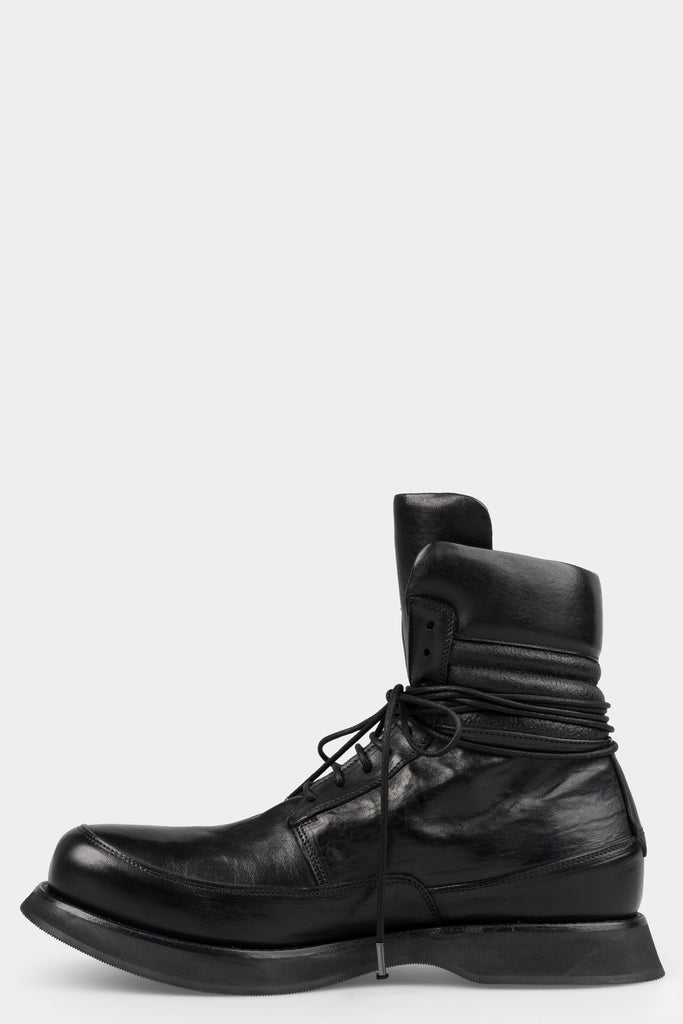 Men's black high top laced leather boots is a collaboration with Gianveer for the FW25/26 collection from La Haine Inside Us.