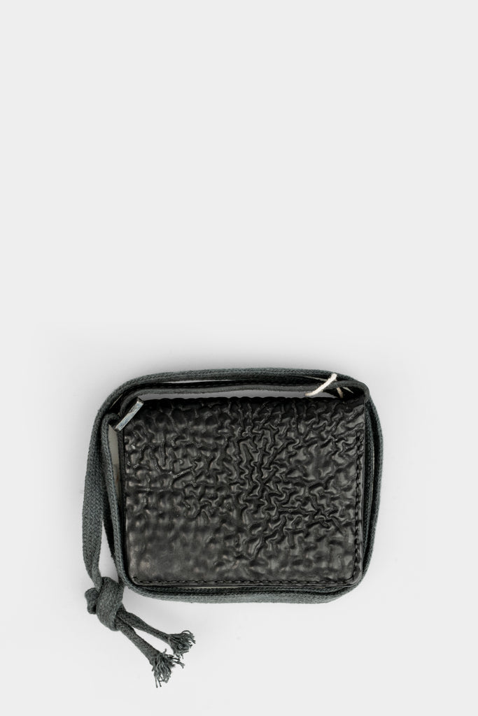 Unisex black culatta horse leather neck wallet from 0-Hide.
