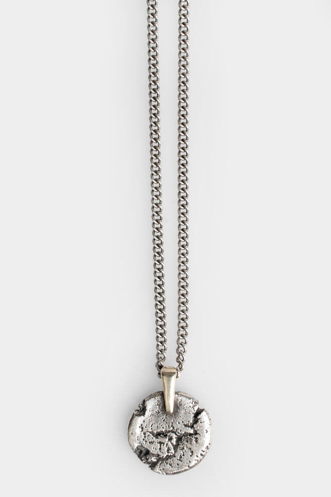 Unisex oxidized silver moon pendant necklace with a 9kt Gold bail from Enri Mars.