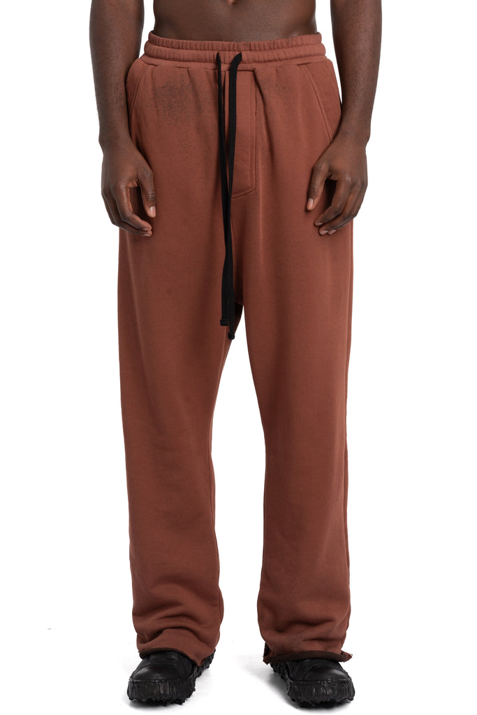Men's spray red oversized drop crotch drawstring pants in a heavy cotton sweat jersey featuring large cargo pockets in the back from the SS26 collection from Thom Krom.