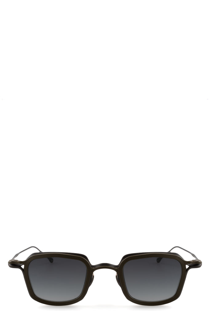 Double layered glasses / sunglasses in antique bronze titanium and aluminum magnesium olive green clip-on sunglasses with dark grey UV400 polyamide sun lenses from Rigards.