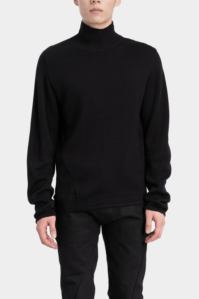 Men’s black turtle neck knit sweater in merino wool from collection “EINS” from LEB by Leon Emanuel Blanck.
